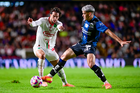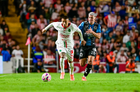 Querétaro, Querétaro, 22 de octubre de 2025. Cade Cowell, durante el partido correspondiente a la jornada 14 del torneo Apertura 2025 de la Liga BBVA MX, entre los Gallos Blancos del Querétaro y las Chivas Rayadas del Guadalajara, realizado en el estadio La Corregidora. Foto: Imago7/ Hugo Martinez