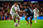 Querétaro, Querétaro, 22 de octubre de 2025. Teun Wilke y Diego Reyes, durante el partido correspondiente a la jornada 14 del torneo Apertura 2025 de la Liga BBVA MX, entre los Gallos Blancos del Querétaro y las Chivas Rayadas del Guadalajara, realizado en el estadio La Corregidora. Foto: Imago7/ Hugo Martinez