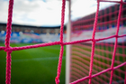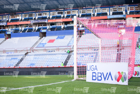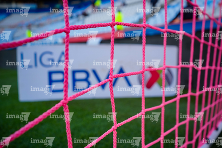 Pachuca, Hidalgo, 22 de octubre de 2025. Red de Portería de la Campaña Rosa para la concientización del Cáncer de Mama, durante el partido correspondiente a la jornada 14 del torneo Apertura 2025 de la Liga BBVA MX, entre los Tuzos del Pachuca y los Tigres de la UANL, realizado en el estadio Hidalgo. Foto: Imago7/ Diego Padilla