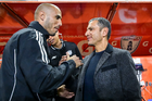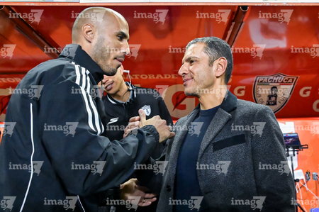 Pachuca, Hidalgo, 22 de octubre de 2025. Guido Pizarro, director técnico y Jaime Lozano, director técnico, durante el partido correspondiente a la jornada 14 del torneo Apertura 2025 de la Liga BBVA MX, entre los Tuzos del Pachuca y los Tigres de la UANL, realizado en el estadio Hidalgo. Foto: Imago7/ Mauricio Ruiz