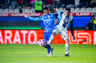 Pachuca, Hidalgo, 22 de octubre de 2025. Rômulo Zwarg y Robert Kenedy, durante el partido correspondiente a la jornada 14 del torneo Apertura 2025 de la Liga BBVA MX, entre los Tuzos del Pachuca y los Tigres de la UANL, realizado en el estadio Hidalgo. Foto: Imago7/ Elizabeth Hernández