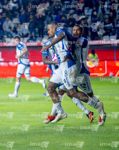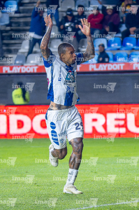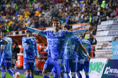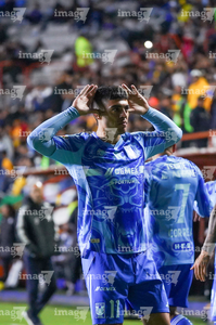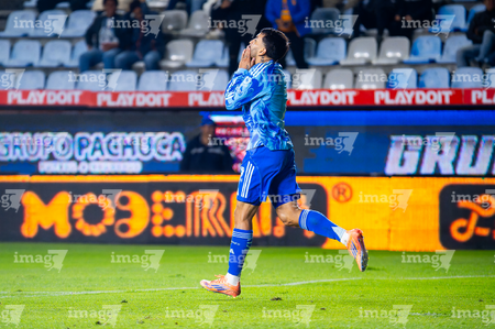 Pachuca, Hidalgo, 22 de octubre de 2025. Carlos Moreno en festejo, durante el partido correspondiente a la jornada 14 del torneo Apertura 2025 de la Liga BBVA MX, entre los Tuzos del Pachuca y los Tigres de la UANL, realizado en el estadio Hidalgo. Foto: Imago7/ Jacqueline Pedraza