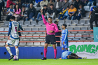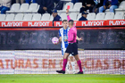 Pachuca, Hidalgo, 22 de octubre de 2025. Abraham de Jesús Quirarte, árbitro central, durante el partido correspondiente a la jornada 14 del torneo Apertura 2025 de la Liga BBVA MX, entre los Tuzos del Pachuca y los Tigres de la UANL, realizado en el estadio Hidalgo. Foto: Imago7/ Elizabeth Hernández