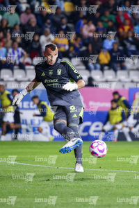 Pachuca, Hidalgo, 22 de octubre de 2025. Nahuel Guzmán, durante el partido correspondiente a la jornada 14 del torneo Apertura 2025 de la Liga BBVA MX, entre los Tuzos del Pachuca y los Tigres de la UANL, realizado en el estadio Hidalgo. Foto: Imago7/ Diego Padilla