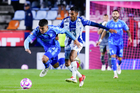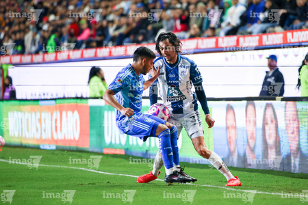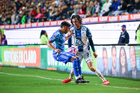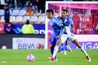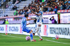 Pachuca, Hidalgo, 22 de octubre de 2025. Daniel Aceves y Ángel Correa, durante el partido correspondiente a la jornada 14 del torneo Apertura 2025 de la Liga BBVA MX, entre los Tuzos del Pachuca y los Tigres de la UANL, realizado en el estadio Hidalgo. Foto: Imago7/ Jacqueline Pedraza
