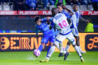 Pachuca, Hidalgo, 22 de octubre de 2025. Oussama Idrissi y Jesús Garza, durante el partido correspondiente a la jornada 14 del torneo Apertura 2025 de la Liga BBVA MX, entre los Tuzos del Pachuca y los Tigres de la UANL, realizado en el estadio Hidalgo. Foto: Imago7/ Elizabeth Hernández