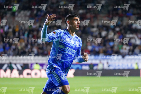 Pachuca, Hidalgo, 22 de octubre de 2025. Víctor Guzmán, durante el partido correspondiente a la jornada 14 del torneo Apertura 2025 de la Liga BBVA MX, entre los Tuzos del Pachuca y los Tigres de la UANL, realizado en el estadio Hidalgo. Foto: Imago7/ Elizabeth Hernández