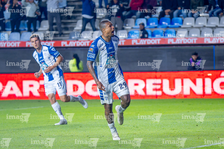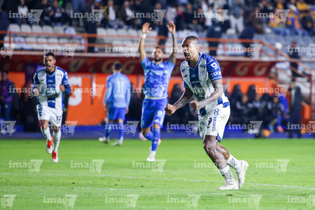 Pachuca, Hidalgo, 22 de octubre de 2025. Robert Kenedy en festejo de gol, durante el partido correspondiente a la jornada 14 del torneo Apertura 2025 de la Liga BBVA MX, entre los Tuzos del Pachuca y los Tigres de la UANL, realizado en el estadio Hidalgo. Foto: Imago7/ Elizabeth Hernández