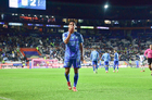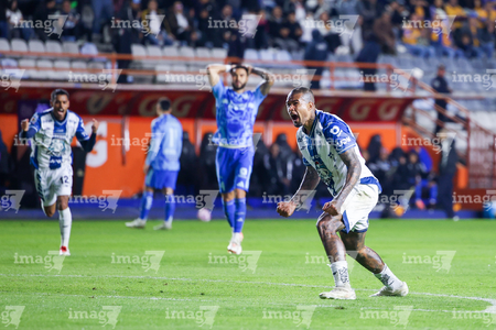 Pachuca, Hidalgo, 22 de octubre de 2025. Robert Kenedy anota gol, durante el partido correspondiente a la jornada 14 del torneo Apertura 2025 de la Liga BBVA MX, entre los Tuzos del Pachuca y los Tigres de la UANL, realizado en el estadio Hidalgo. Foto: Imago7/ Elizabeth Hernández