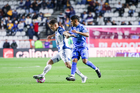Pachuca, Hidalgo, 22 de octubre de 2025. Eduardo Bauermann y Ángel Correa, durante el partido correspondiente a la jornada 14 del torneo Apertura 2025 de la Liga BBVA MX, entre los Tuzos del Pachuca y los Tigres de la UANL, realizado en el estadio Hidalgo. Foto: Imago7/ Elizabeth Hernández