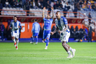Pachuca, Hidalgo, 22 de octubre de 2025. Diego Lainez anota gol, durante el partido correspondiente a la jornada 14 del torneo Apertura 2025 de la Liga BBVA MX, entre los Tuzos del Pachuca y los Tigres de la UANL, realizado en el estadio Hidalgo. Foto: Imago7/ Jacqueline Pedraza