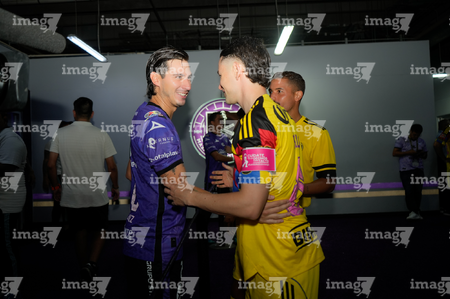Mazatlán, Sinaloa, 24 de octubre de 2025. Fabio Gomes y Mauro Zaleta en festejo de gol, durante el partido correspondiente a la jornada 15 del torneo Apertura 2025 de la Liga BBVA MX, entre los Cañoneros del Mazatlán FC y las Águilas del América, realizado en el estadio El Encanto. Foto: Imago7/ Diego Padilla