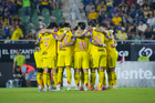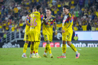 Mazatlán, Sinaloa, 24 de octubre de 2025. Jugadores del Club América, durante el partido correspondiente a la jornada 15 del torneo Apertura 2025 de la Liga BBVA MX, entre los Cañoneros del Mazatlán FC y las Águilas del América, realizado en el estadio El Encanto. Foto: Imago7/ Diego Padilla