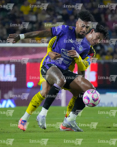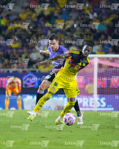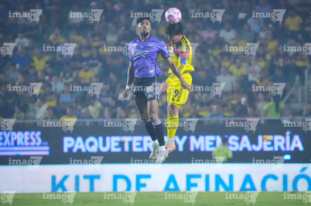 Mazatlán, Sinaloa, 24 de octubre de 2025. Alan Torres y Cristian Borja, durante el partido correspondiente a la jornada 15 del torneo Apertura 2025 de la Liga BBVA MX, entre los Cañoneros del Mazatlán FC y las Águilas del América, realizado en el estadio El Encanto. Foto: Imago7/ Diego Padilla