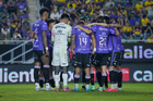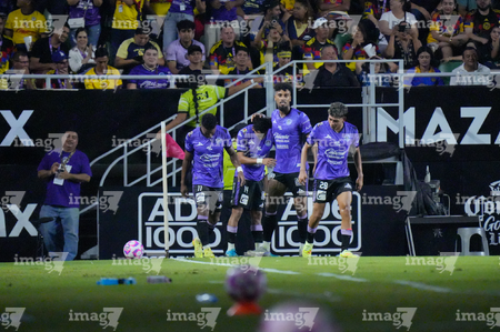 Mazatlán, Sinaloa, 24 de octubre de 2025. Jugadores de Mazatlán FC en festejo de gol, durante el partido correspondiente a la jornada 15 del torneo Apertura 2025 de la Liga BBVA MX, entre los Cañoneros del Mazatlán FC y las Águilas del América, realizado en el estadio El Encanto. Foto: Imago7/ Diego Padilla