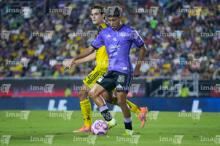 Mazatlán, Sinaloa, 24 de octubre de 2025. Mauro Lainez y Álvaro Fidalgo, durante el partido correspondiente a la jornada 15 del torneo Apertura 2025 de la Liga BBVA MX, entre los Cañoneros del Mazatlán FC y las Águilas del América, realizado en el estadio El Encanto. Foto: Imago7/ Diego Padilla