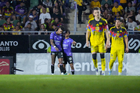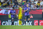 Mazatlán, Sinaloa, 24 de octubre de 2025. Ricardo Gutiérrez recibe gol, durante el partido correspondiente a la jornada 15 del torneo Apertura 2025 de la Liga BBVA MX, entre los Cañoneros del Mazatlán FC y las Águilas del América, realizado en el estadio El Encanto. Foto: Imago7/ Diego Padilla