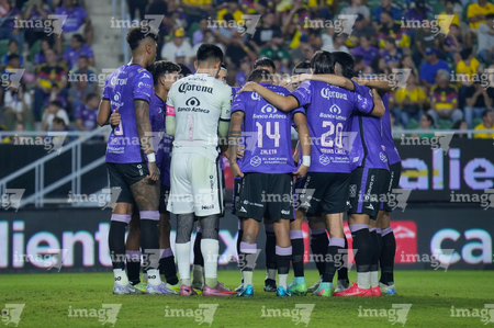 Mazatlán, Sinaloa, 24 de octubre de 2025. Jugadores de Mazatlán FC, durante el partido correspondiente a la jornada 15 del torneo Apertura 2025 de la Liga BBVA MX, entre los Cañoneros del Mazatlán FC y las Águilas del América, realizado en el estadio El Encanto. Foto: Imago7/ Diego Padilla