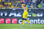 Mazatlán, Sinaloa, 24 de octubre de 2025. Brian Rodríguez en festejo de gol, durante el partido correspondiente a la jornada 15 del torneo Apertura 2025 de la Liga BBVA MX, entre los Cañoneros del Mazatlán FC y las Águilas del América, realizado en el estadio El Encanto. Foto: Imago7/ Diego Padilla
