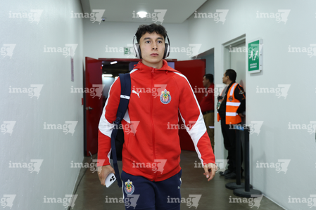 Zapopan, Jalisco, 25 de octubre de 2025. Aldo Rocha, durante el partido correspondiente a la jornada 15 del torneo Apertura 2025 de la Liga BBVA MX, entre las Chivas Rayadas del Guadalajara y los Rojinegros del Atlas, realizado en el estadio Akron. Foto: Imago7/ Juan Carlos Cubeyro.