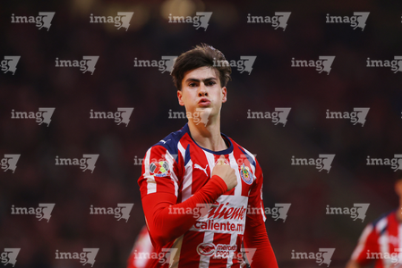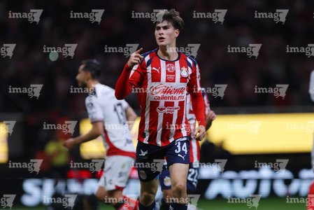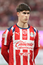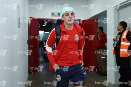 Zapopan, Jalisco, 25 de octubre de 2025. Santiago Sandoval, durante el partido correspondiente a la jornada 15 del torneo Apertura 2025 de la Liga BBVA MX, entre las Chivas Rayadas del Guadalajara y los Rojinegros del Atlas, realizado en el estadio Akron. Foto: Imago7/ Juan Carlos Cubeyro.