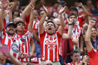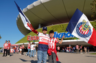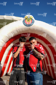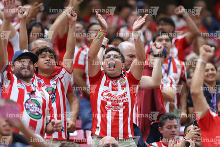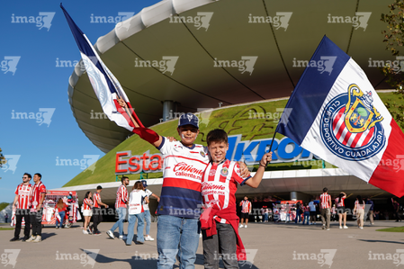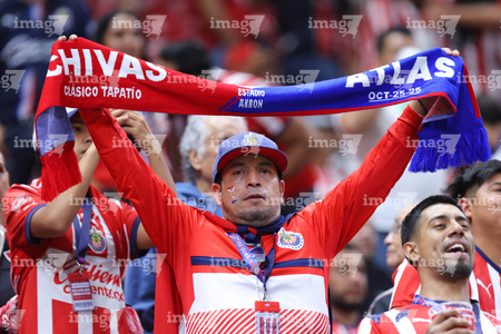 Zapopan, Jalisco, 25 de octubre de 2025. Afición, durante el partido correspondiente a la jornada 15 del torneo Apertura 2025 de la Liga BBVA MX, entre las Chivas Rayadas del Guadalajara y los Rojinegros del Atlas, realizado en el estadio Akron. Foto: Imago7/ Alejandro Lias