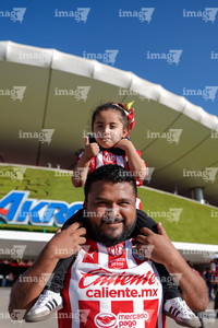 Zapopan, Jalisco, 25 de octubre de 2025. Afición, durante el partido correspondiente a la jornada 15 del torneo Apertura 2025 de la Liga BBVA MX, entre las Chivas Rayadas del Guadalajara y los Rojinegros del Atlas, realizado en el estadio Akron. Foto: Imago7/ Juan Carlos Cubeyro.