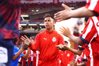 Zapopan, Jalisco, 25 de octubre de 2025. Efraín Álvarez en festejo, durante el partido correspondiente a la jornada 15 del torneo Apertura 2025 de la Liga BBVA MX, entre las Chivas Rayadas del Guadalajara y los Rojinegros del Atlas, realizado en el estadio Akron. Foto: Imago7/ Juan Carlos Cubeyro.