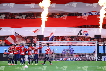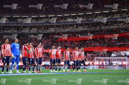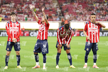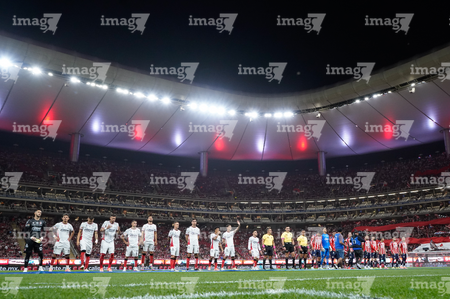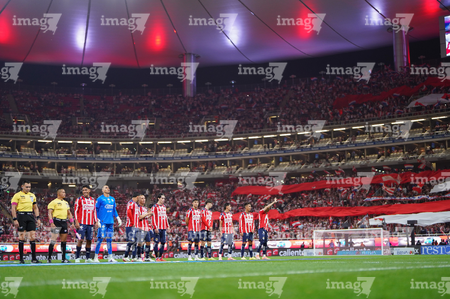 Zapopan, Jalisco, 25 de octubre de 2025. Protocolo, durante el partido correspondiente a la jornada 15 del torneo Apertura 2025 de la Liga BBVA MX, entre las Chivas Rayadas del Guadalajara y los Rojinegros del Atlas, realizado en el estadio Akron. Foto: Imago7/Andrés Sepúlveda