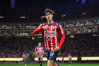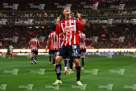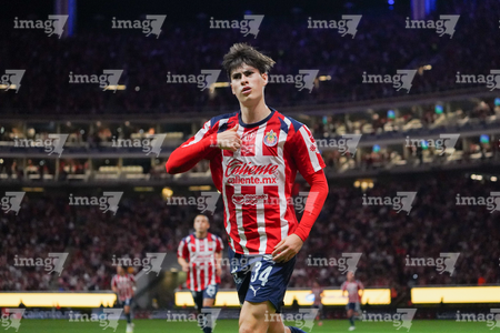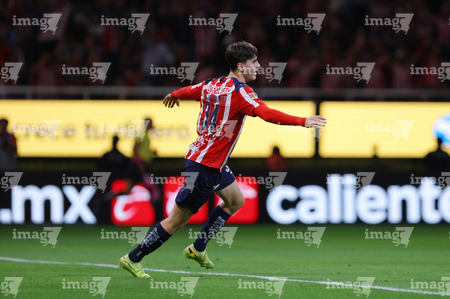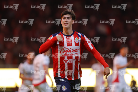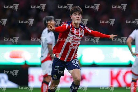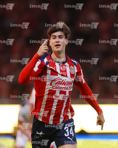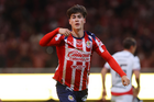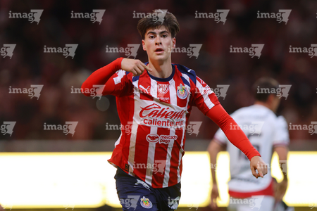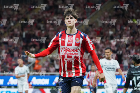 Zapopan, Jalisco, 25 de octubre de 2025. Mateo García en festejo de gol, durante el partido correspondiente a la jornada 15 del torneo Apertura 2025 de la Liga BBVA MX, entre las Chivas Rayadas del Guadalajara y los Rojinegros del Atlas, realizado en el estadio Akron. Foto: Imago7/ Juan Carlos Cubeyro.