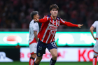 Zapopan, Jalisco, 25 de octubre de 2025. Teun Wilke, durante el partido correspondiente a la jornada 15 del torneo Apertura 2025 de la Liga BBVA MX, entre las Chivas Rayadas del Guadalajara y los Rojinegros del Atlas, realizado en el estadio Akron. Foto: Imago7/ Juan Carlos Cubeyro.