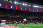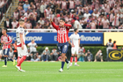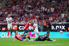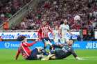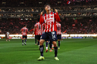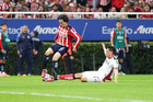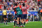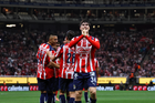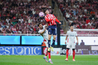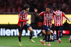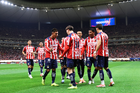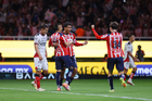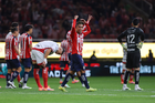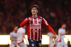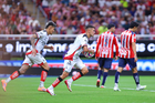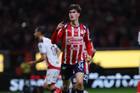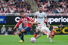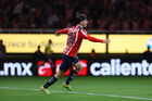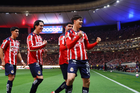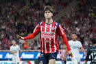 Zapopan, Jalisco, 25 de octubre de 2025. Mateo García anota gol, durante el partido correspondiente a la jornada 15 del torneo Apertura 2025 de la Liga BBVA MX, entre las Chivas Rayadas del Guadalajara y los Rojinegros del Atlas, realizado en el estadio Akron. Foto: Imago7/ Juan Carlos Cubeyro.