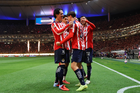 Zapopan, Jalisco, 25 de octubre de 2025. Efraín Álvarez y Armando González en festejo de gol, durante el partido correspondiente a la jornada 15 del torneo Apertura 2025 de la Liga BBVA MX, entre las Chivas Rayadas del Guadalajara y los Rojinegros del Atlas, realizado en el estadio Akron. Foto: Imago7/ Alejandro Lias