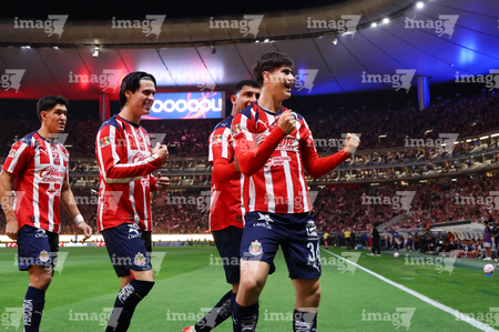 Zapopan, Jalisco, 25 de octubre de 2025. Diego Campillo en festejo, durante el partido correspondiente a la jornada 15 del torneo Apertura 2025 de la Liga BBVA MX, entre las Chivas Rayadas del Guadalajara y los Rojinegros del Atlas, realizado en el estadio Akron. Foto: Imago7/ Hugo Ramirez