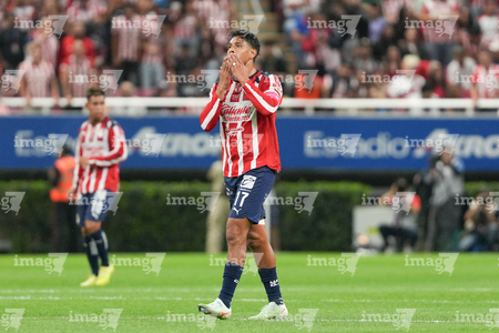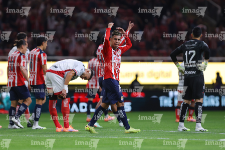 Zapopan, Jalisco, 25 de octubre de 2025. Santiago Sandoval en lamento, durante el partido correspondiente a la jornada 15 del torneo Apertura 2025 de la Liga BBVA MX, entre las Chivas Rayadas del Guadalajara y los Rojinegros del Atlas, realizado en el estadio Akron. Foto: Imago7/ Alejandro Lias