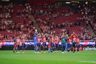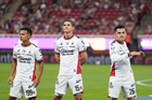 Zapopan, Jalisco, 25 de octubre de 2025. Jugadores del Atlas, durante el partido correspondiente a la jornada 15 del torneo Apertura 2025 de la Liga BBVA MX, entre las Chivas Rayadas del Guadalajara y los Rojinegros del Atlas, realizado en el estadio Akron. Foto: Imago7/ Alejandro Lias