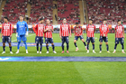 Zapopan, Jalisco, 25 de octubre de 2025. Protocolo, durante el partido correspondiente a la jornada 15 del torneo Apertura 2025 de la Liga BBVA MX, entre las Chivas Rayadas del Guadalajara y los Rojinegros del Atlas, realizado en el estadio Akron. Foto: Imago7/ Alejandro Lias