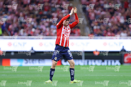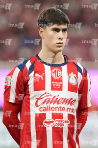 Zapopan, Jalisco, 25 de octubre de 2025. Gaddi Aguirre, durante el partido correspondiente a la jornada 15 del torneo Apertura 2025 de la Liga BBVA MX, entre las Chivas Rayadas del Guadalajara y los Rojinegros del Atlas, realizado en el estadio Akron. Foto: Imago7/ Juan Carlos Cubeyro.