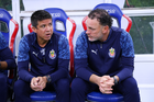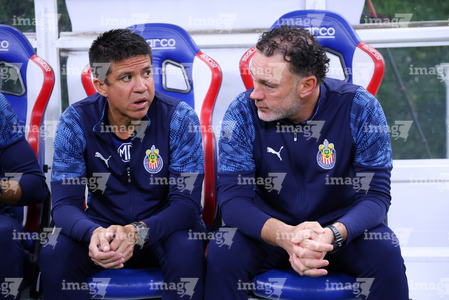 Zapopan, Jalisco, 25 de octubre de 2025. Leandro Avila, auxiliar técnico y Gabriel Milito, director técnico, durante el partido correspondiente a la jornada 15 del torneo Apertura 2025 de la Liga BBVA MX, entre las Chivas Rayadas del Guadalajara y los Rojinegros del Atlas, realizado en el estadio Akron. Foto: Imago7/ Juan Carlos Cubeyro.