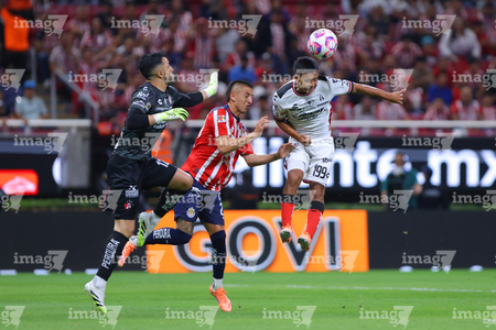 Zapopan, Jalisco, 25 de octubre de 2025. Camilo Vargas, Roberto Alvarado "Piojo" y Sergio Hernández, durante el partido correspondiente a la jornada 15 del torneo Apertura 2025 de la Liga BBVA MX, entre las Chivas Rayadas del Guadalajara y los Rojinegros del Atlas, realizado en el estadio Akron. Foto: Imago7/ Juan Carlos Cubeyro.