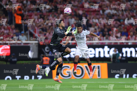 Zapopan, Jalisco, 25 de octubre de 2025. Camilo Vargas y Sergio Hernández, durante el partido correspondiente a la jornada 15 del torneo Apertura 2025 de la Liga BBVA MX, entre las Chivas Rayadas del Guadalajara y los Rojinegros del Atlas, realizado en el estadio Akron. Foto: Imago7/ Juan Carlos Cubeyro.