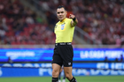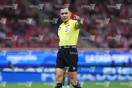 Zapopan, Jalisco, 25 de octubre de 2025. Marco Antonio Ortiz, árbitro central, durante el partido correspondiente a la jornada 15 del torneo Apertura 2025 de la Liga BBVA MX, entre las Chivas Rayadas del Guadalajara y los Rojinegros del Atlas, realizado en el estadio Akron. Foto: Imago7/ Juan Carlos Cubeyro.