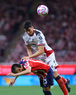 Zapopan, Jalisco, 25 de octubre de 2025. Gustavo Ferrareis y Erick Gutiérrez, durante el partido correspondiente a la jornada 15 del torneo Apertura 2025 de la Liga BBVA MX, entre las Chivas Rayadas del Guadalajara y los Rojinegros del Atlas, realizado en el estadio Akron. Foto: Imago7/Andrés Sepúlveda
