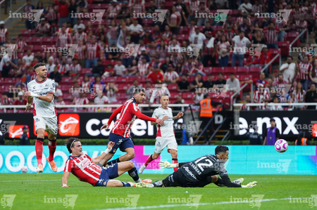 Zapopan, Jalisco, 25 de octubre de 2025. Armando González anota gol, durante el partido correspondiente a la jornada 15 del torneo Apertura 2025 de la Liga BBVA MX, entre las Chivas Rayadas del Guadalajara y los Rojinegros del Atlas, realizado en el estadio Akron. Foto: Imago7/ Alejandro Lias