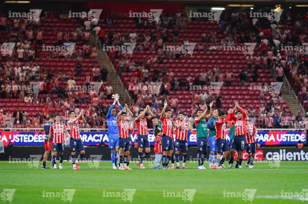 Zapopan, Jalisco, 25 de octubre de 2025. Jugadores de Chivas, durante el partido correspondiente a la jornada 15 del torneo Apertura 2025 de la Liga BBVA MX, entre las Chivas Rayadas del Guadalajara y los Rojinegros del Atlas, realizado en el estadio Akron. Foto: Imago7/ Juan Carlos Cubeyro.