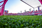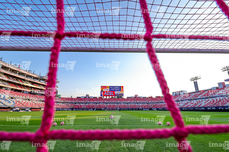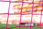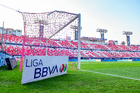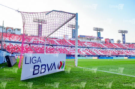 San Luis Potosí, San Luis Potosí, 26 de octubre de 2025. Red de porteria de la Campaña Rosa para la concientización del Cáncer de Mama, durante el partido correspondiente a la jornada 15 del torneo Apertura 2025 de la Liga BBVA MX, entre el Atlético San Luis y los Rayos del Necaxa, realizado en el estadio Alfonso Lastras. Foto: Imago7/ Hugo Martinez