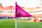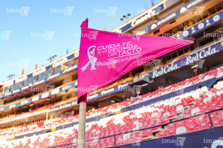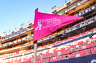 San Luis Potosí, San Luis Potosí, 26 de octubre de 2025. Banderin de tiro de esquina de la Campaña Rosa para la concientización del Cáncer de Mama, durante el partido correspondiente a la jornada 15 del torneo Apertura 2025 de la Liga BBVA MX, entre el Atlético San Luis y los Rayos del Necaxa, realizado en el estadio Alfonso Lastras. Foto: Imago7/ Hugo Martinez