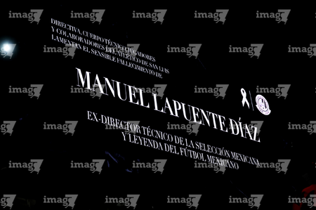 San Luis Potosí, San Luis Potosí, 26 de octubre de 2025. Minuto de silencio por el fallecimiento de Manuel Lapuente, durante el partido correspondiente a la jornada 15 del torneo Apertura 2025 de la Liga BBVA MX, entre el Atlético San Luis y los Rayos del Necaxa, realizado en el estadio Alfonso Lastras. Foto: Imago7/ Hugo Martinez