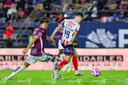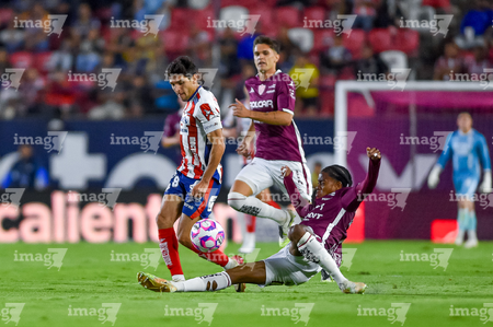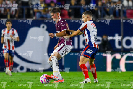San Luis Potosí, San Luis Potosí, 26 de octubre de 2025. Tomas Badaloni y Sebastien Salles-lamonge, durante el partido correspondiente a la jornada 15 del torneo Apertura 2025 de la Liga BBVA MX, entre el Atlético San Luis y los Rayos del Necaxa, realizado en el estadio Alfonso Lastras. Foto: Imago7/ Olimpia Puga