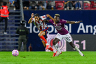 San Luis Potosí, San Luis Potosí, 26 de octubre de 2025. Kevin Ante, durante el partido correspondiente a la jornada 15 del torneo Apertura 2025 de la Liga BBVA MX, entre el Atlético San Luis y los Rayos del Necaxa, realizado en el estadio Alfonso Lastras. Foto: Imago7/ Hugo Martinez